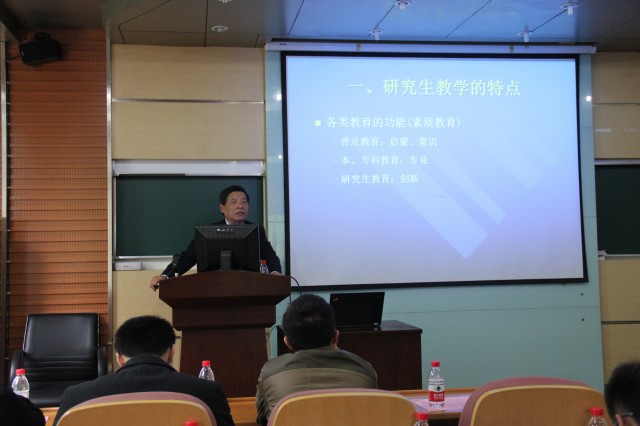 杨老师结合自己研究生阶段学习及作为研究生导师时的经历向同学们介绍了研究生教育。杨老师讲到,研究生教育的本质是创新而不是学习知识。研究生教学的特点是要发挥学生的主观能动性,注重学科间的交叉,提高学习效率,能够系统性学习、研究性学习、交流性学习。杨老师还提出研究生要有“三创”:即创新意识、创造能力、创业精神,同时也应该具备“四于”:勤于学习、善于思考、勇于实践和乐于奉献。杨老师希望我们每位同学都能发扬求是的学风,有良好的学术规范。杨老师的一席话有如醍醐灌顶,让在座的每一位同学深有感触。