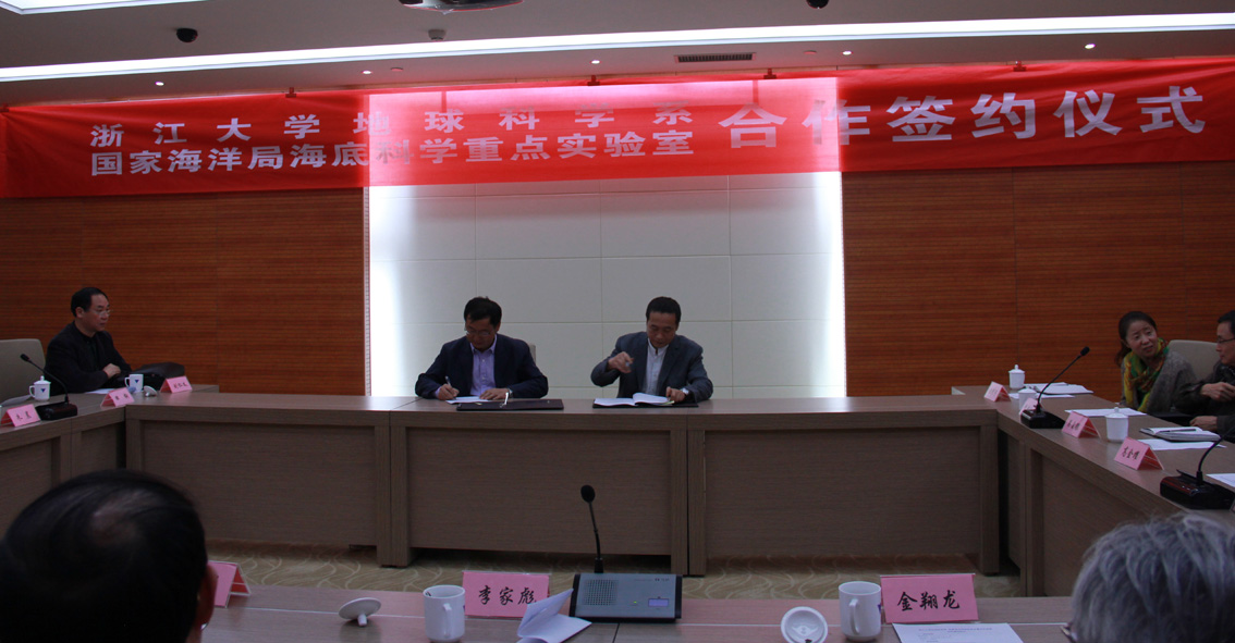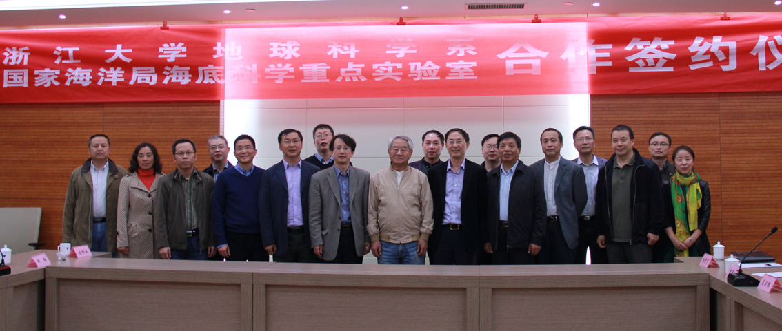 11月7日下午,地球科学系与国家海洋局海底科学重点实验室合作签约仪式在浙大紫金港校友楼玉泉厅举行。会议由闻继威主持,我系系领导及各研究所所长、海洋局海底科学重点实验室领导参加签字仪式,海洋二所李家彪所长、金翔龙院士、浙江大学常务副校长吴朝晖出席会议并讲话,海洋二所人事处、科技处、我校科学技术研究院相关领导参会。