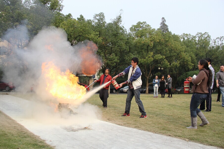 为了使实验室师生员工了解消防基础知识,提高安全防范意识,增强自我保护能力,掌握对突发火灾的应变、逃生技能,学会灭火以及有序地进行人员、财物的疏散处理,确保师生的生命安全及财产安全,2014年11月12日下午1点30分,浙江大学地科系在玉泉校区第六教学楼举行了一次以实验室安全隐患分析和火灾应急逃生为主题的消防演习。