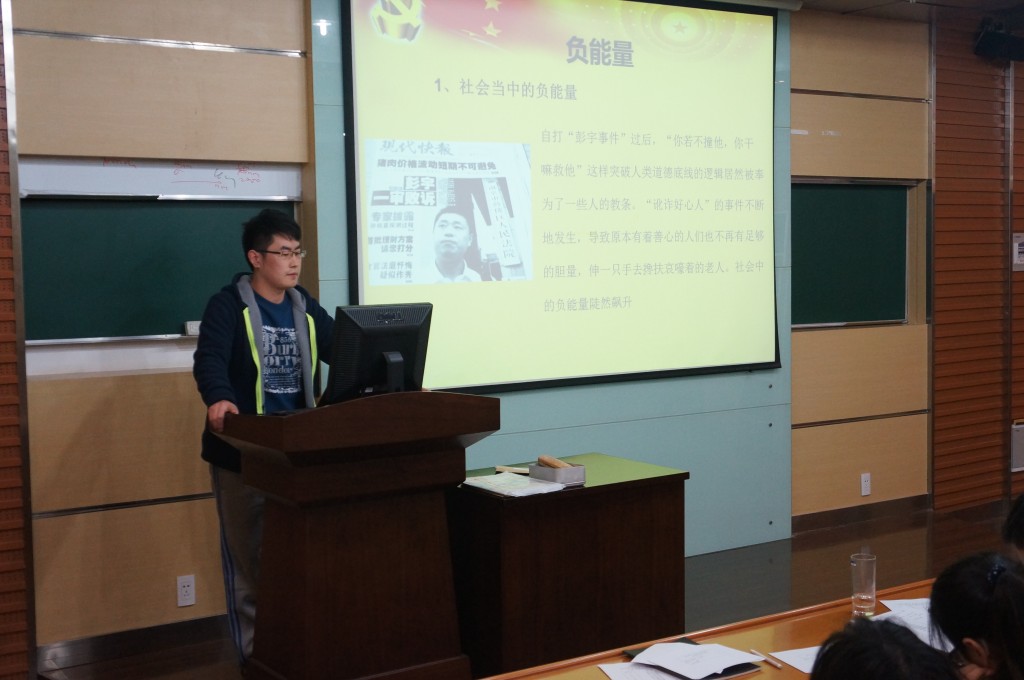 2014年11月13日18时开始,教六203灯火通明。来自10个学生支部的13名入党积极分子为大家分享读书的喜悦与感悟。