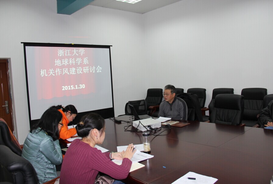 为贯彻加强机关作风建设的相关文件精神,地科系于2015年1月30日由闻继威书记主持召开了机关作风建设研讨会,会议内容包括:①学习中央加强和改进机关作风建设的文件②2015年行政办公室的工作计划③就下一阶段开展“加强机关作风建设”听取意见。地科系主任陈汉林,副主任沈晓华老师参加了研讨,并发表了重要讲话,办公室主任方幼君老师主持了会议。
