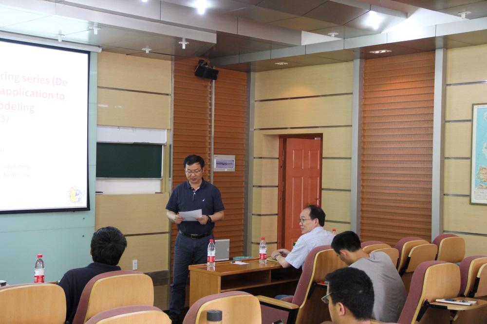2015年6月24日星期三下午2:00,浙江大学地球科学学院教六203报告厅邀请了加州大学圣克鲁兹分校地球与行星科学系的吴如山教授来给地球物理专业的学生做精彩的报告。吴如山教授,现任加州大学模拟与成像实验室主任,是我国第一批在国外取得博士学位的国际知名地球物理学家。吴老师在散射成像、小波束成像、非线性反演等领域发表了一系列具有国际重要影响力的论著,在国内外地球物理界具有广泛的影响力。