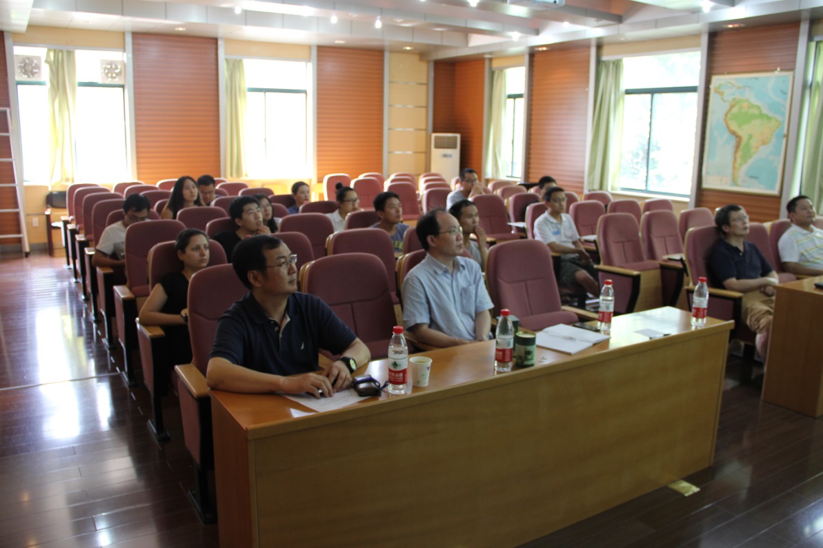 报告开始,地球科学学院院长陈汉林教授先对吴教授做了简单的介绍并对吴教授的来访表示热烈的欢迎,然后吴教授做了题为《Renormalized scattering series (De Wolf series) and its application in waveform modeling 》的报告。在这次报告中,吴教授提出了采用重整化理论上的优势,它是一种物理上的近似,能更精确的模拟地震波的传播过程,将该 De Wolf近似方法用于直接非线性反演能取得较好的效果。