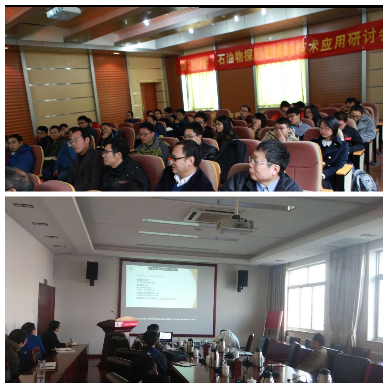 本次研讨会有来自浙大、中科大、北大、同济、哈工大等十几所高校的教授以及中海油、中石油、中石化等多家单位的专家共50多人参加。会议采用一会多地开的形式,地科学院203会议室为主会场,同时有20多家单位作为分会场,采取远程会议的方式,针对目前比较火热的压缩感知技术,进行学术交流。
