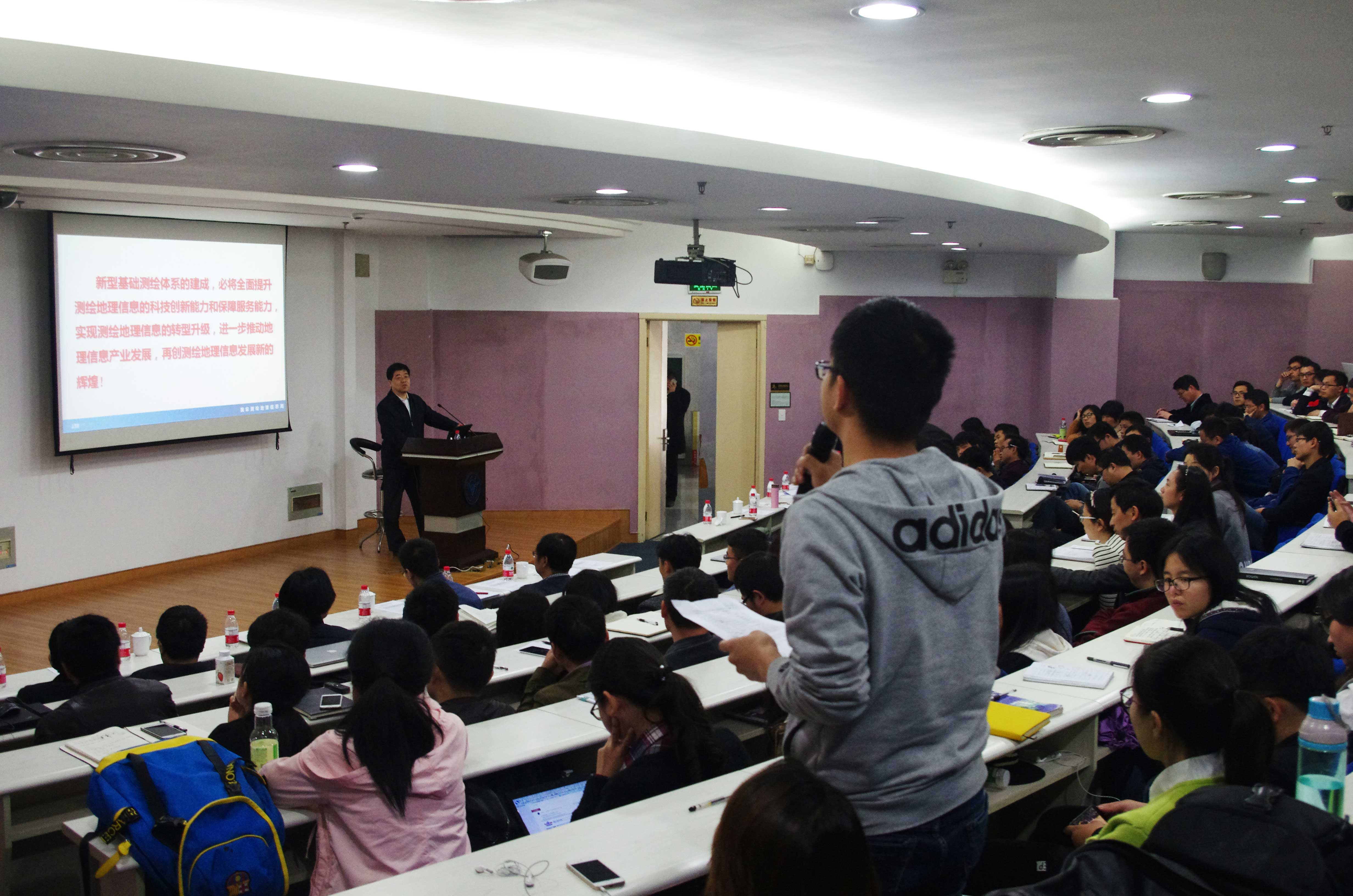 一个多小时的报告,参会人员思路跟随李维森副局长的报告,仿佛快速地浏览了国家测绘地理信息行业的发展现状和未来趋势,同学们也从智慧城市建设中的跨部门数据协同管理、信息共享、信息安全和地理国情普查与自然资源与地理空间基础信息在数据重复采集等角度踊跃提问。在李维森副局长的一一解答中,大家也深刻领会到重大工程建设现阶段确实存在着技术和管理方面的问题和难题,但是“一口吃不成大胖子”,以智慧城市和地理国情为代表等重大工程的建设,必然是一个逐步发展、逐步完善的过程,有赖于所有投身测绘地理信息行业的人员的努力和创新。