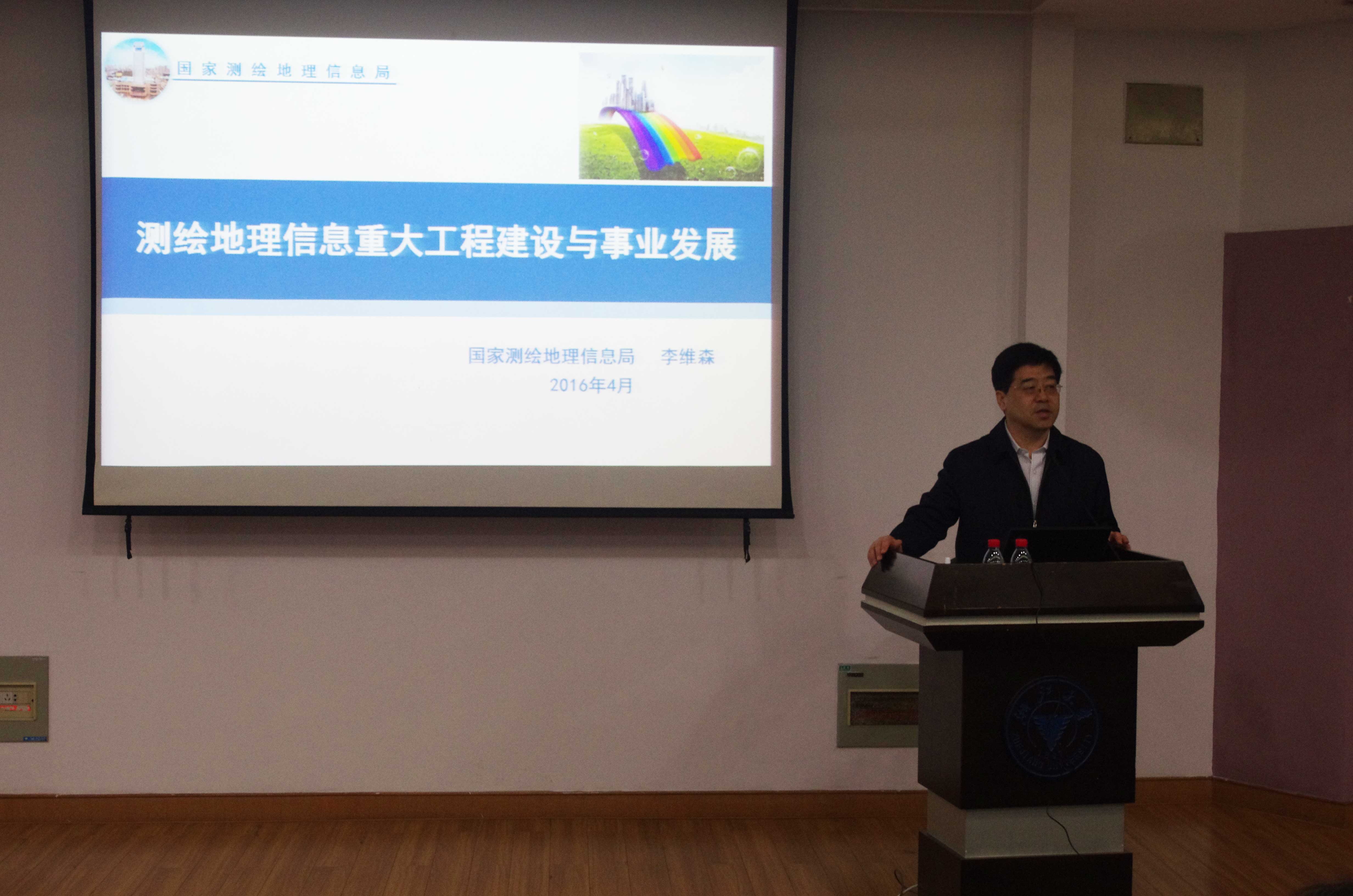 2016年4月8日10:00,求是理学论坛邀请了国家测绘地理信息局副局长李维森教授,在紫金港校区蒙民伟楼223报告厅作一场主题为“中国测绘地理信息重大工程建设与事业发展”的学术报告。报告不仅有本校一百多位师生参加,还吸引了来着浙江省测绘与地理信息局、华东测绘院和河海测绘院等单位近80人参会。