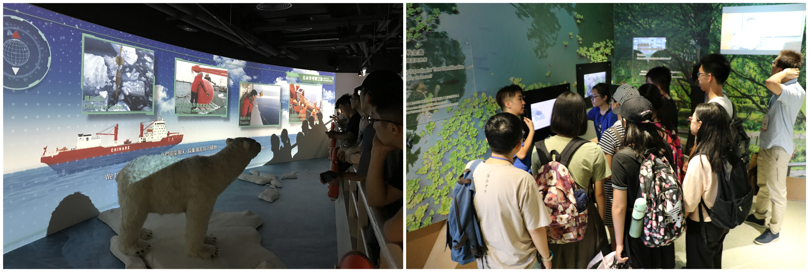 在ISEIS的安排下,同学们参观了CUHK校园内的文化馆和气候变化博物馆,从不同方面了解CUHK的校园文化。在艺术系丁衍庸老师的书画展中同学们体会到CUHK对文化艺术教育形式的自由开放与包容。在气候变化博物馆关于冰川消融与全球变暖的主题展览中,同学们可以通过真实的纪录片、模型演示和图文讲解深切体会到全球变暖带来的危害。可见CUHK在教育和呼吁参观者保护环境,践行低碳生活方式的方面肩负起了应有的社会责任,以实为鉴,以德育人。