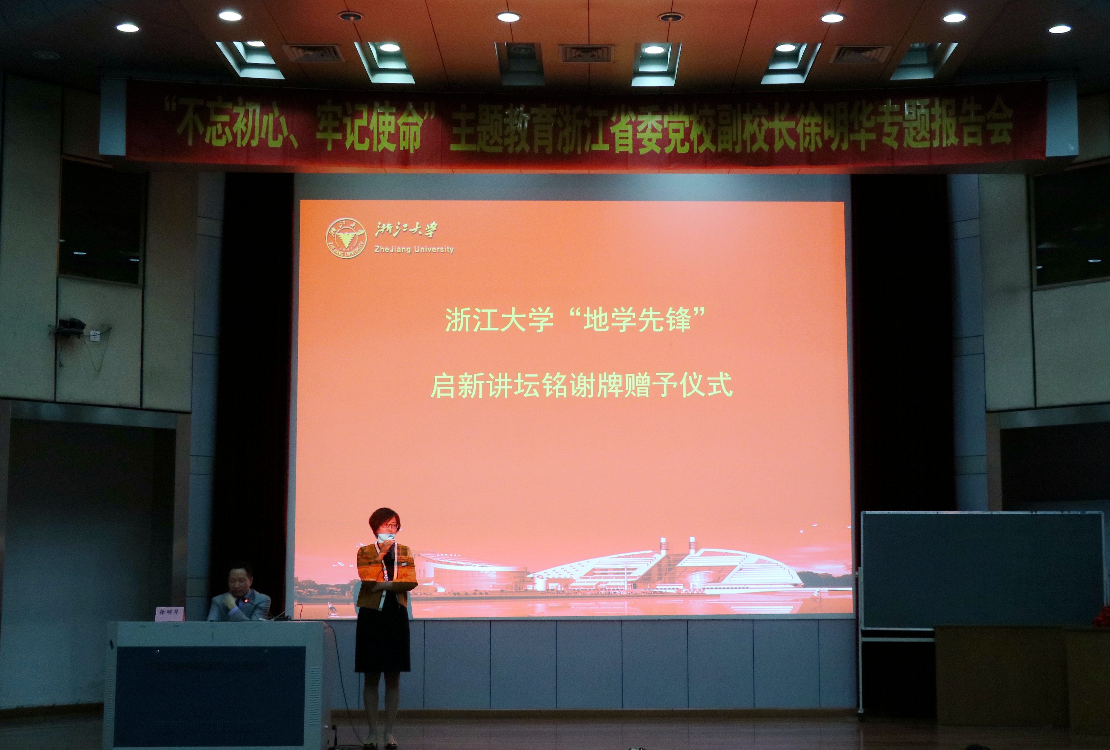 本次报告也是浙江大学“地学先锋”启新讲坛的活动之一,报告会后,王苑代表学院向徐明华颁发了浙江大学“地学先锋”启新讲坛铭谢牌。