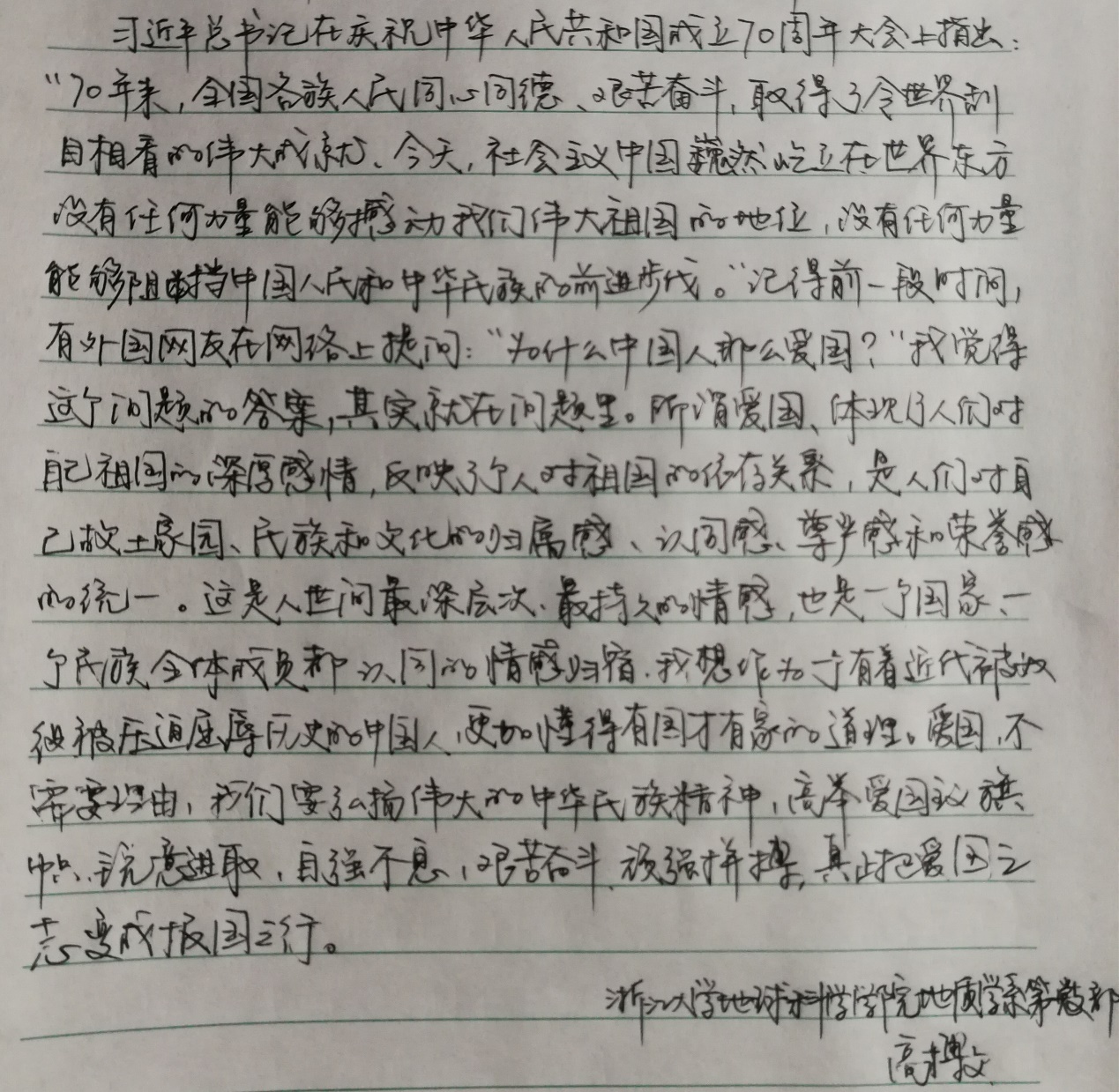 2019年9月30日,为庆祝中华人民共和国成立70周年,弘扬爱国主义精神,开展“不忘初心、牢记使命”主题教育活动,地球科学学院组织近百名学生党员、入党积极分子在上影艺能影院观看了影片《我和我的祖国》并举办了观后感征文比赛。