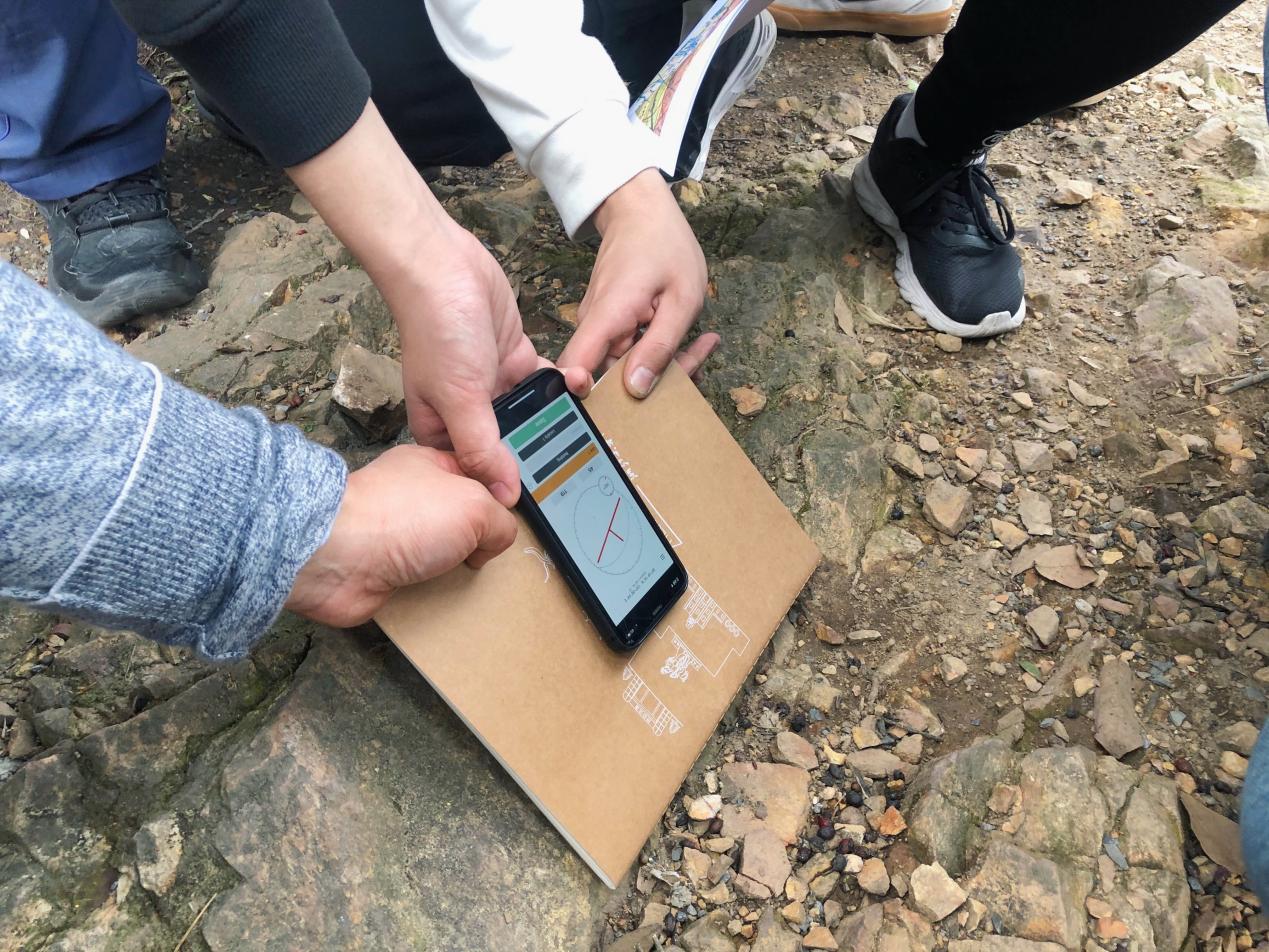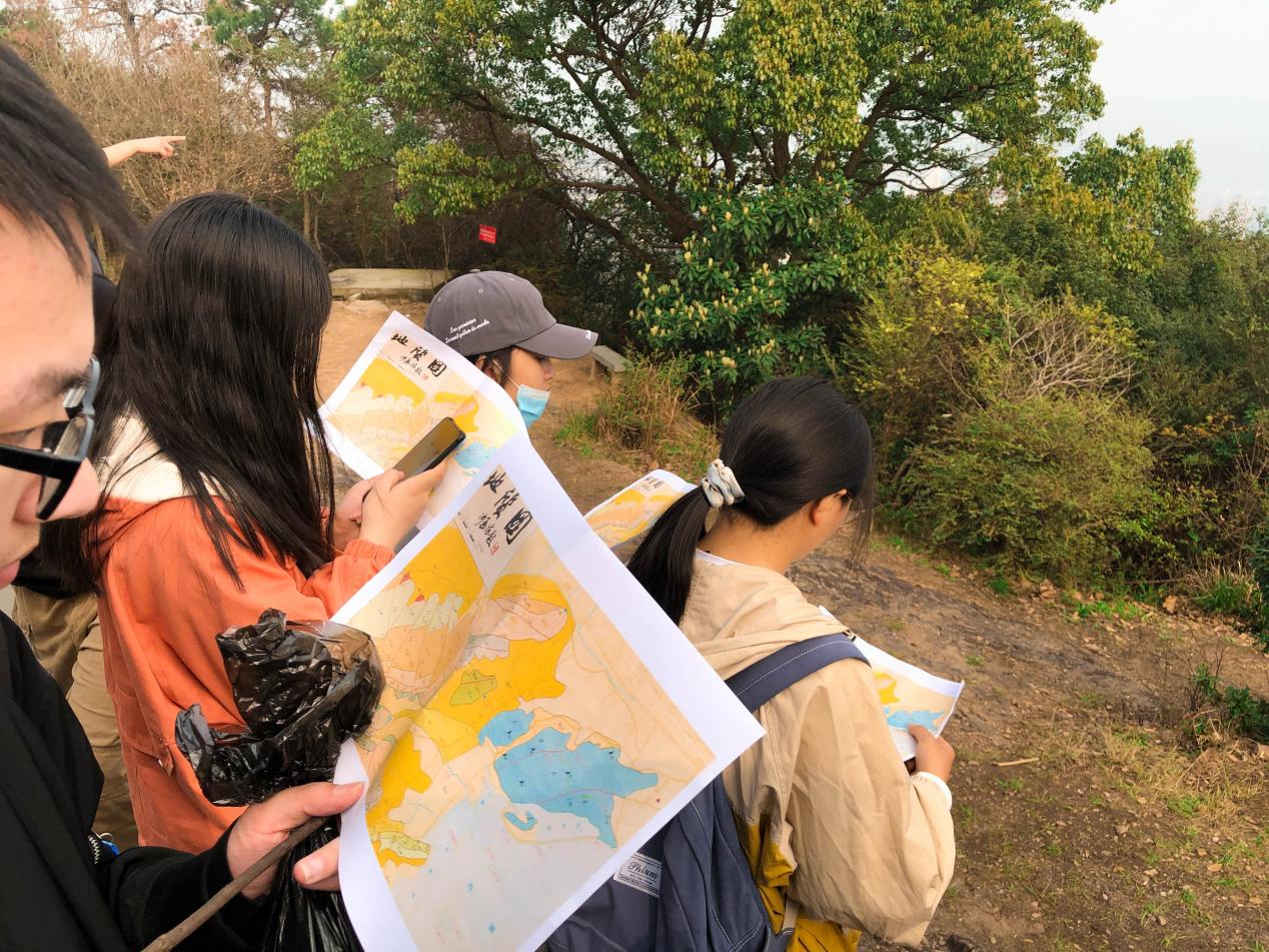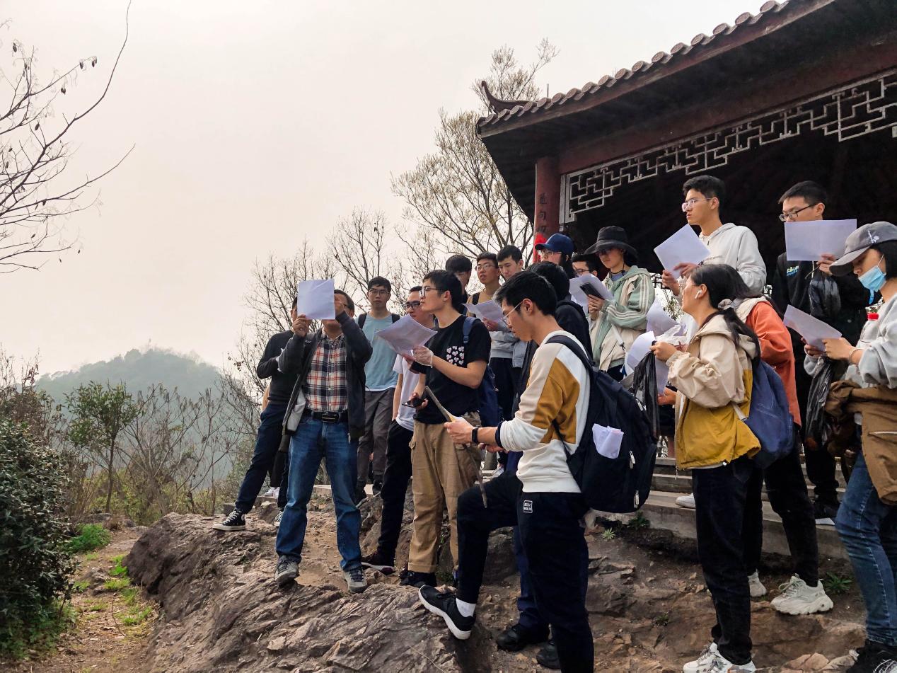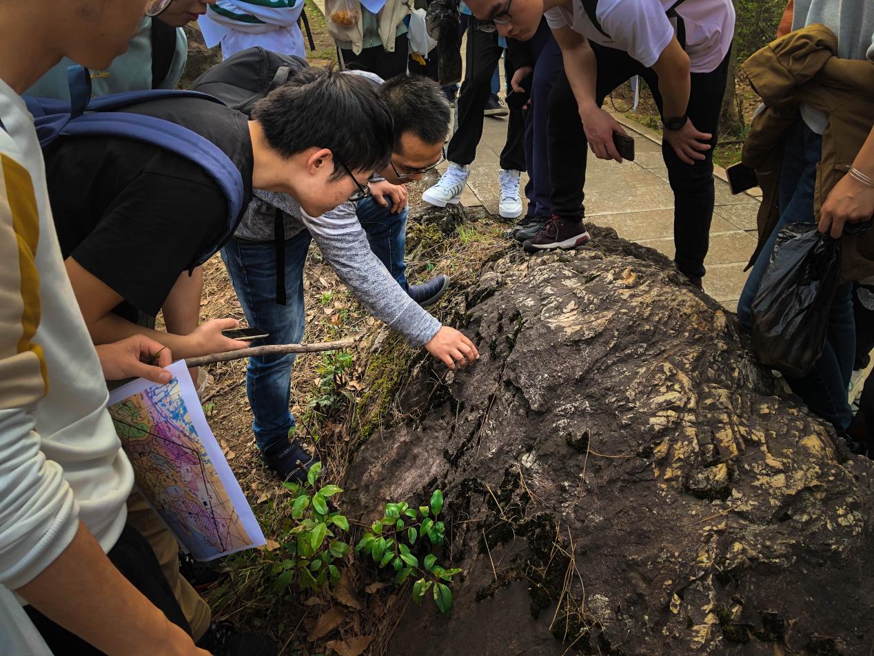 14日下午,同学们和老师们在老和山山脚处“老和云起”集合,同学们人手一份地质图,开始了游学之旅。