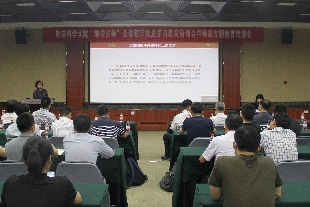 2021年6月18日,地球科学学院在玉泉校区邵逸夫科学馆212会议室召开开展“地学强师”全体教师党史学习教育培训会暨师德专项教育培训,学院党政班子成员、党委委员、纪委委员及全体教职工近百人与会,学院党委副书记、纪委书记陈宁华主持会议。