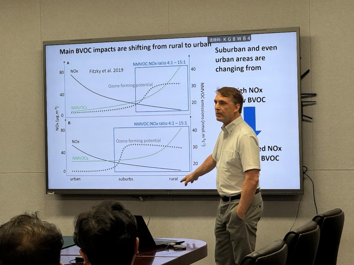 2025年9月19日,美国加州大学尔湾分校Alex.B.Guenther教授应邀来访作题为“基于城市植被排放管理的空气质量优化方案”的报告。地球科学学院国家特聘专家吴仁广教授,大气科学系教师李卫军、毕磊、刘丹彤,博士后陈曦垚及部分学生参加活动。本次活动由朱曙鹏研究员主持。