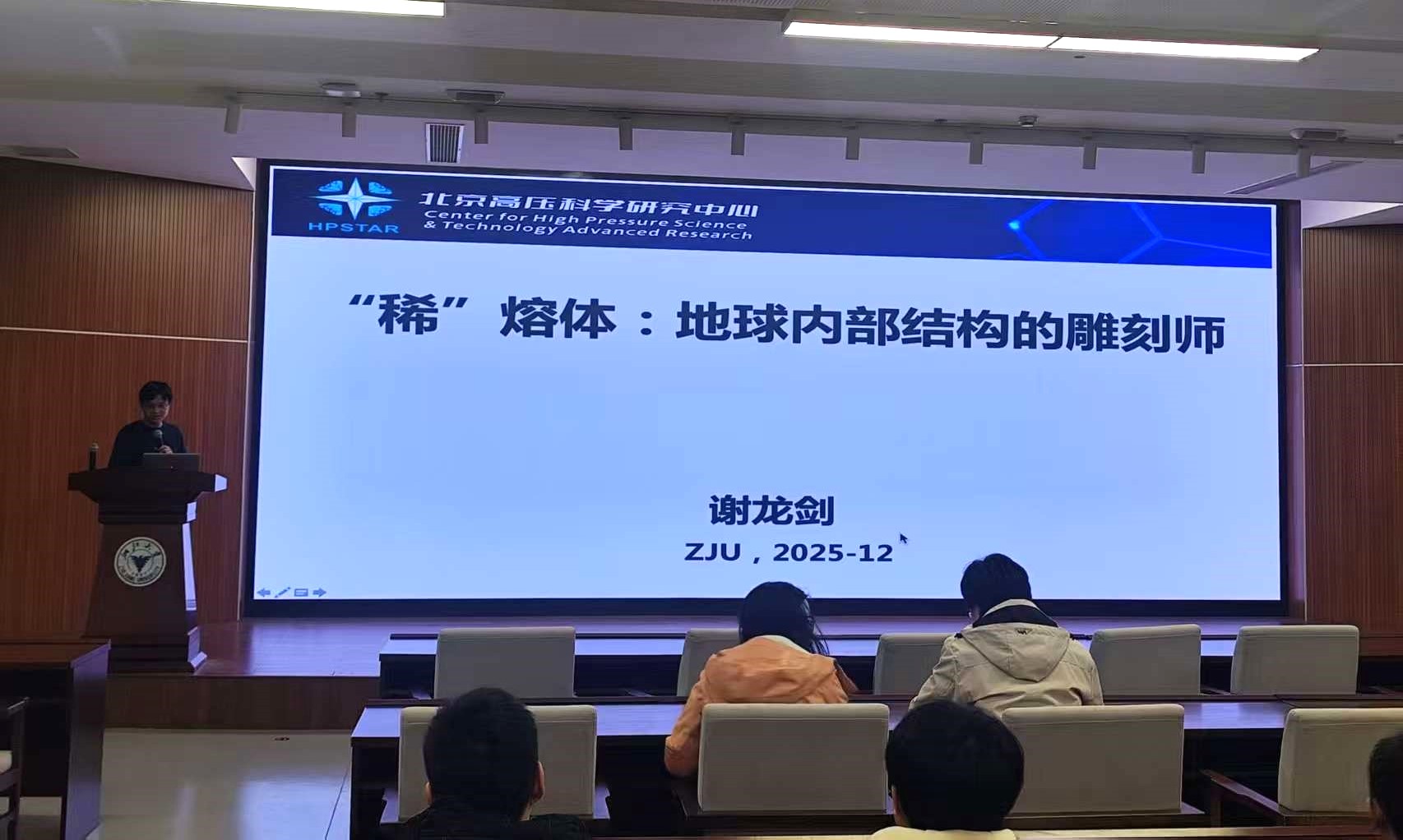 2025年12月5日,北京高压科学研究中心(上海)谢龙剑研究员应邀参加学院第35期“双周学术论坛”,作题为“‘稀’熔体:地球内部结构的雕刻师”的报告。地球科学学院各系、所教师及部分学院学生参加了本次活动。报告会由费宏展研究员主持。