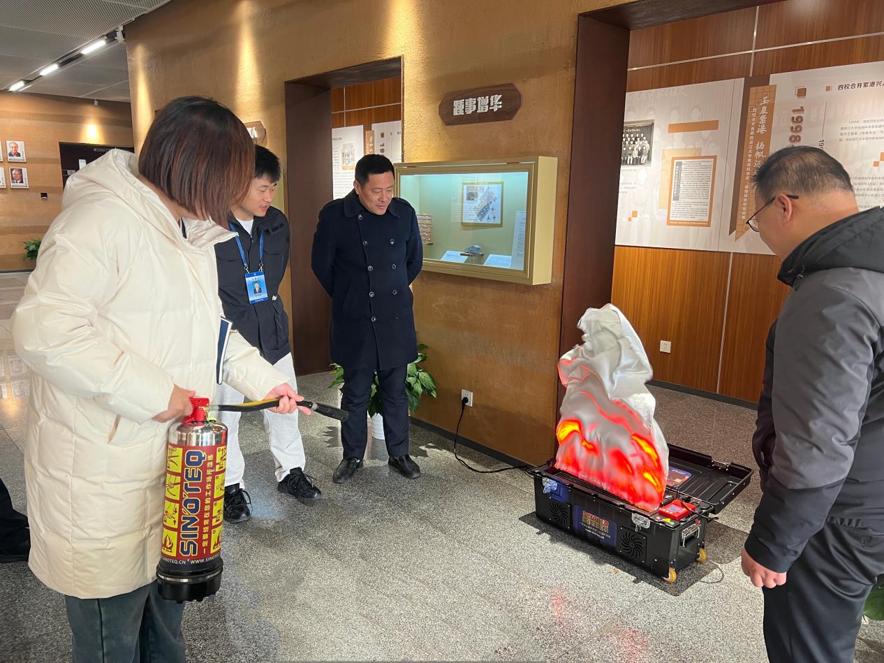 随后,师生们移步至海纳苑1幢1楼大厅,通过电子模拟灭火器进行实操练习。在场师生踊跃参与,实现了从“理论”到“实践”的转化,进一步巩固了灭火技能。