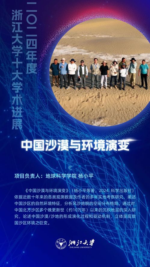 2025年12月24日晚,“浙江大学2024年度十大学术进展暨青年学者十大学术进展”颁奖典礼在紫金港校区求是大讲堂隆重举行。我院杨小平教授团队的学术成果“中国沙漠及其环境演变研究”入选十大学术进展!